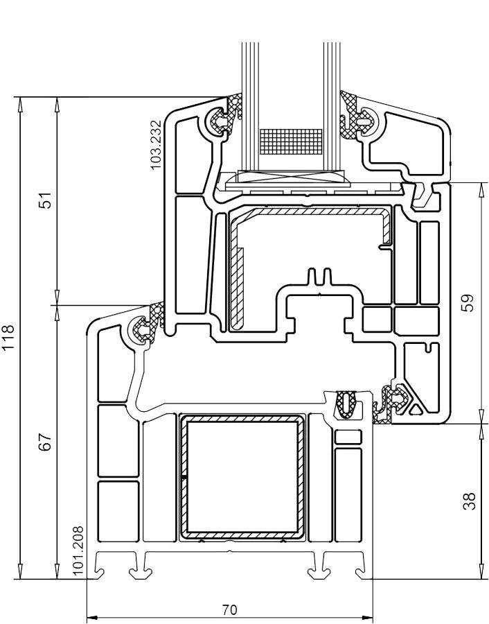 I profili hanno una profondità di base di 70 mm, con 5 camere d’isolamento; possono essere utilizzati nelle nuove costruzioni ma anche in quelle di ristrutturazione.